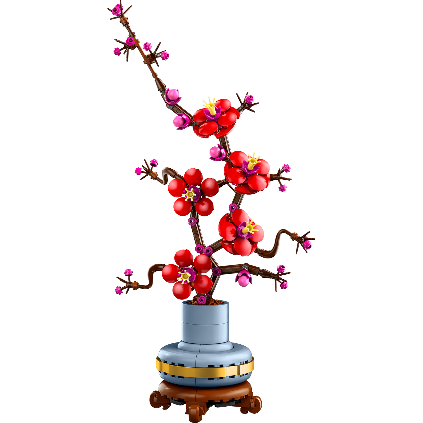 Take time out with the LEGO Icons Plum Blossom (10369) flower decor building set for adults. The plum blossom is a popular motif in traditional art, often portrayed in ink-and-wash paintings as part of a classic quartet of beautiful plants known as the Four Gentlemen. Indulge in a mindful building project or treat a loved one to this timeless floral display - a perfect gift idea for any occasion. This detailed replica captures the elegance of the iconic winter plant with its woody stem and vivid red-and-magenta flowers. Set in a pastel-blue flowerpot with a golden band and wood-effect plinth, it is easy to assemble, delivers a rewarding building experience and makes a beautiful, easy-care flower display for the home and office. Discover a space for relaxation with buildable models from the LEGO Botanical Collection, part of the inspiring range of LEGO building sets designed for adults. A digital version of the building instructions is available in the LEGO Builder app.